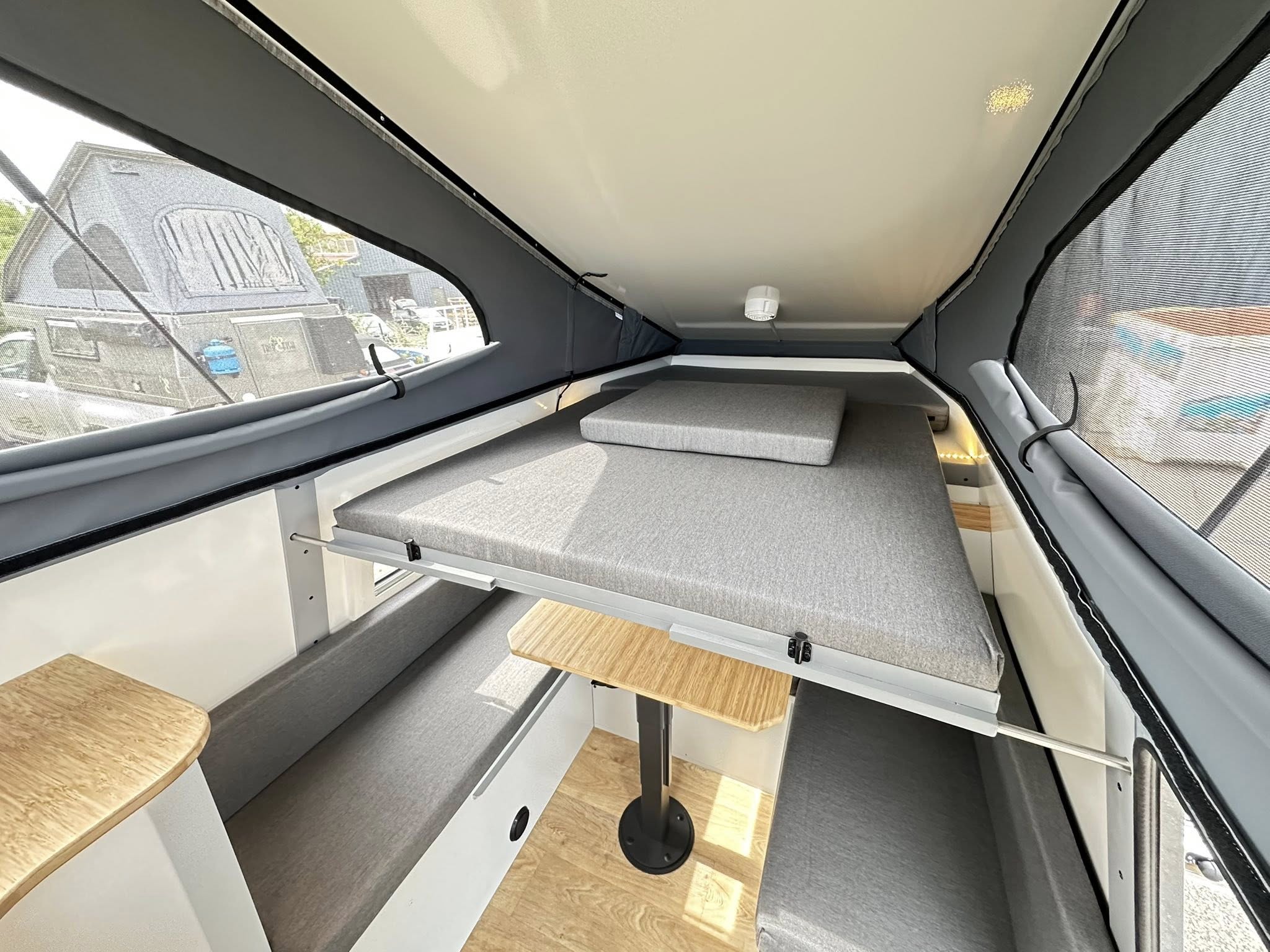 Le toit relevable isolé offre trois ouvertures avec moustiquaires intégrées.